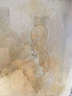 Diese Wandgestaltung bei einem Privatkunden wurde in mehreren Schichten aufgetragen und bearbeitet. Anschliessend wurden die Wände geschliffen. Je nach Lichteinfall tauchen so immer andere Zeichungen und Reflektionen auf.